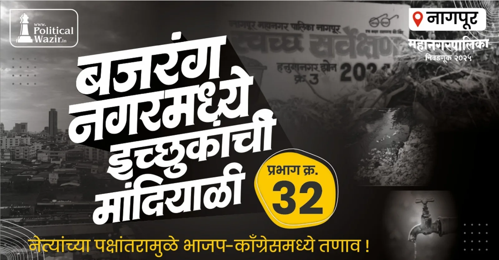 प्रभाग ३२ मध्ये यावेळी ‘जुन्या विरुद्ध नव्या’ असा संघर्ष पाहायला मिळेल. जो उमेदवार ‘सिमेंट रोडमुळे होणारे जलमय नागपूर’ आणि ‘उद्यानांचे रखडलेले प्रश्न’ सोडवण्याचे ठोस आश्वासन देईल, त्यालाच बजरंग नगरची जनता कौल देईल. कुणबी आणि तेली समाजाच्या मतांचे ध्रुवीकरण येथे निर्णायक ठरेल.